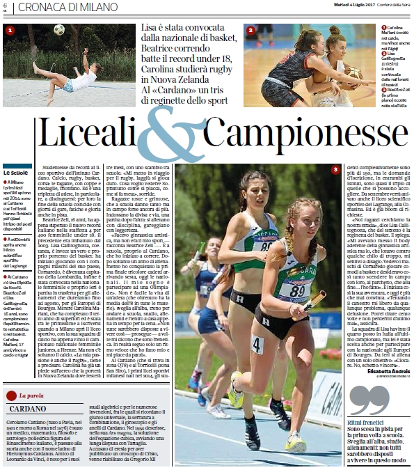 Com'è però che Beatrice Zeli è diventata la testimonial dell'atletica per Topolino? Nasce tutto da un servizio del Corriere della Sera Milano di martedì 4 luglio: "Liceali & campionesse", di Elisabetta Andreis, dedicato al Liceo Cardano di Milano, dove Beatrice studia, indirizzo Sportivo. Lei e altre due compagne hanno portato la loro testimonianza di atlete, facendolo talmente bene da colpire i giornalisti di Topolino, lettori del quotidiano. Quando si è trattato di parlare di sport e di atletica, la scelta della testimonial è caduta naturalmente su di lei.